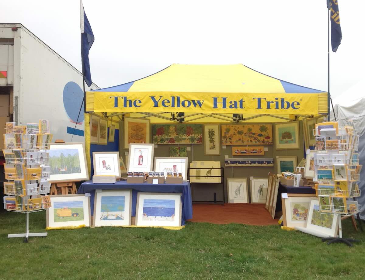 Irene also paints commissions for clients world wide, she has recently painted a clients garden depicting them in a Yellow Hat Tribe hat.